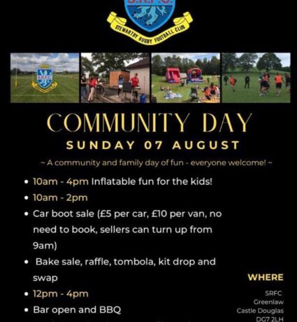 Join us at Greenlaw for a community & family day full of fun – everyone is welcome! Fun inflatables for the kids, car boot sale, bake sale, raffle, tombola, kit drop, touch rugby and so much more! Its a day not to be missed.