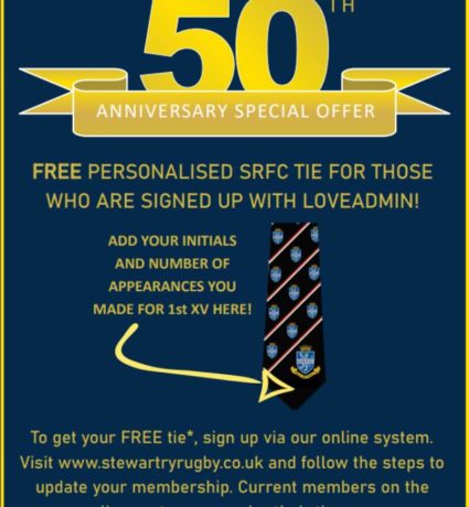 To claim your FREE tie*, sign up via our new online system (Details here) Your tie will have the Number of appearances you made for the 1st XV, along with your initials Current members on the online system can order their ties through John Picken